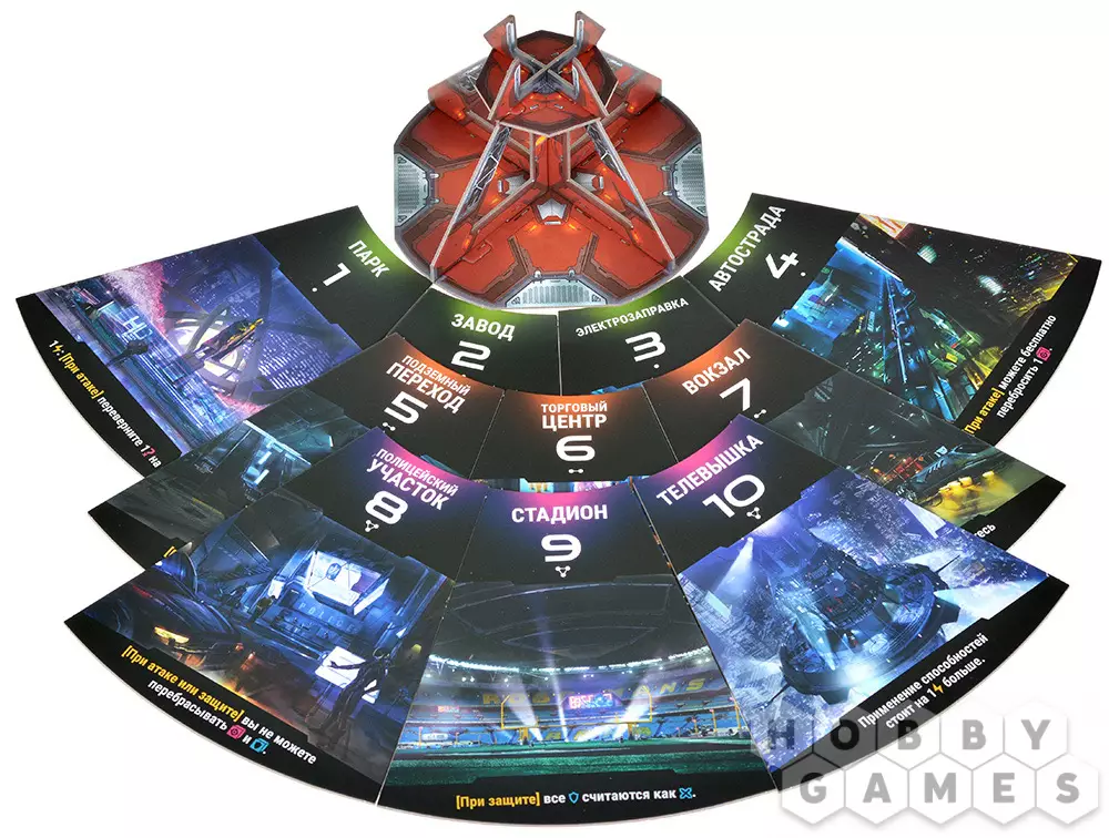 - Закрытие секторов. В конце каждого раунда один из секторов города будет уходить под воду – все ресурсы и боты, что находились на нём, исчезают, а персонажи игроков получают урон.