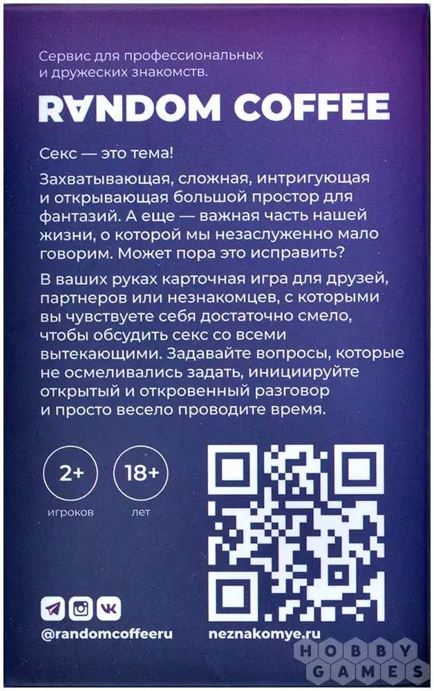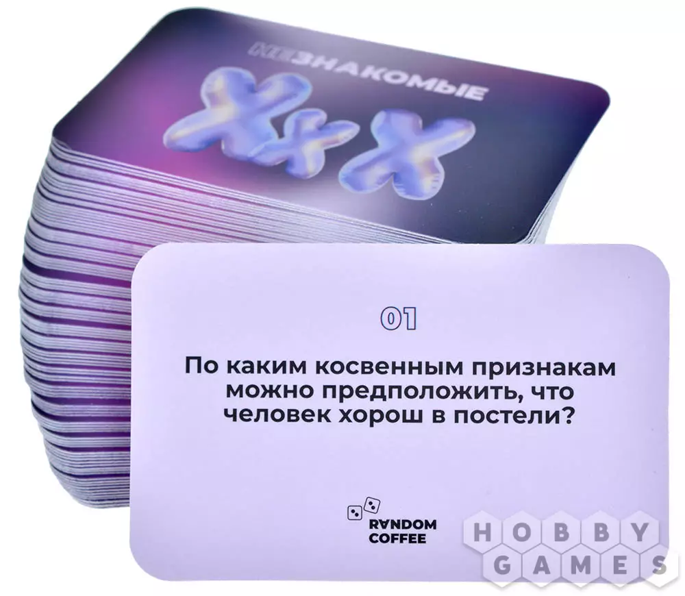 Карточная игра "Незнакомые" – это 99 разнообразных вопросов, которые помогут вам завести осмысленные беседы и узнать людей поближе. Разные наборы пригодятся в различных ситуациях: общие, но глубокие вопросы для лёгкого старта общения с новыми знакомыми и друзьями, вопросы для тёплой и откровенной беседы в кругу семьи и вопросы для тех, кто в отношениях, чтобы лучше узнать и услышать свою вторую половинку. С этой игрой вы сможете преодолеть барьер молчания.
