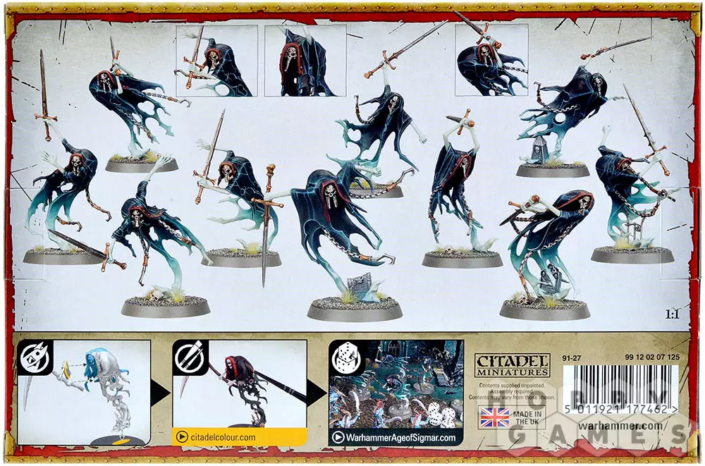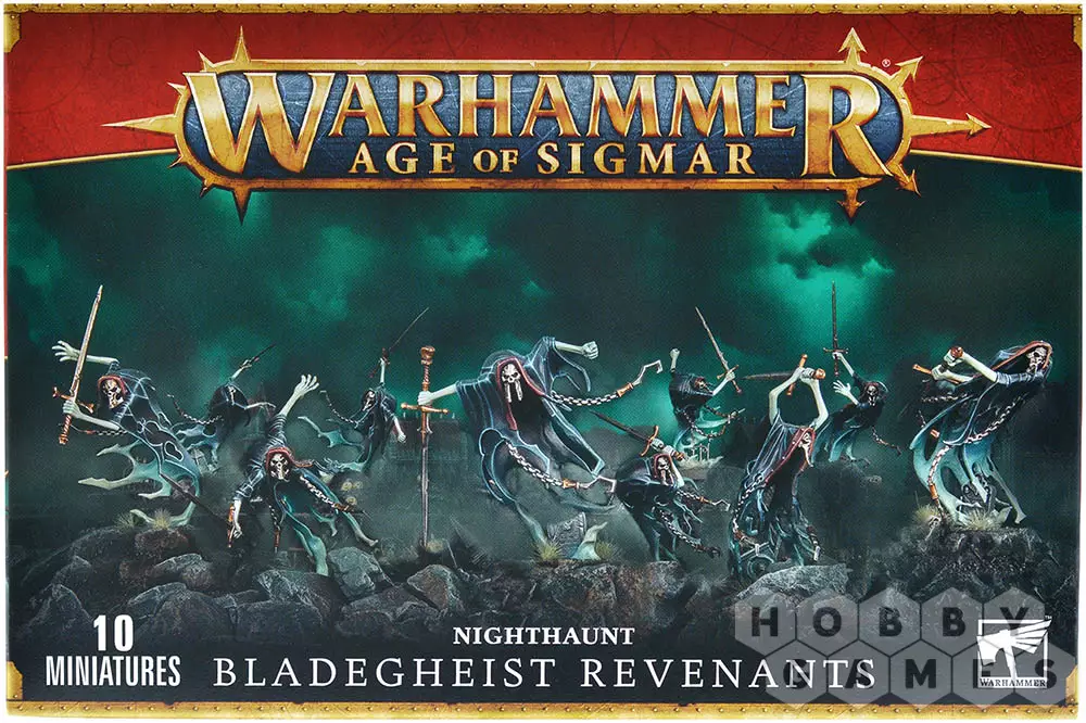 Этот многокомпонентный пластиковый набор содержит детали, необходимые для сборки 10 миниатюр Призрачных Мечников (Bladegheist Revenants). Пребывающие в вечных страданиях духи облачены в потрепанные мантии, рассеивающиеся в эфире, которые подчеркивают их хаотический безумный стиль боя. Их позы представлены в бросках и уворотах, цепи, связывающие их с Шаишем, свободно раскачиваются вокруг. Под складками их капюшонов виднеются металлические маски – в наборе содержится 10 различных, и они подойдут для любой детали плаща, а также 10 различных больших мечей.