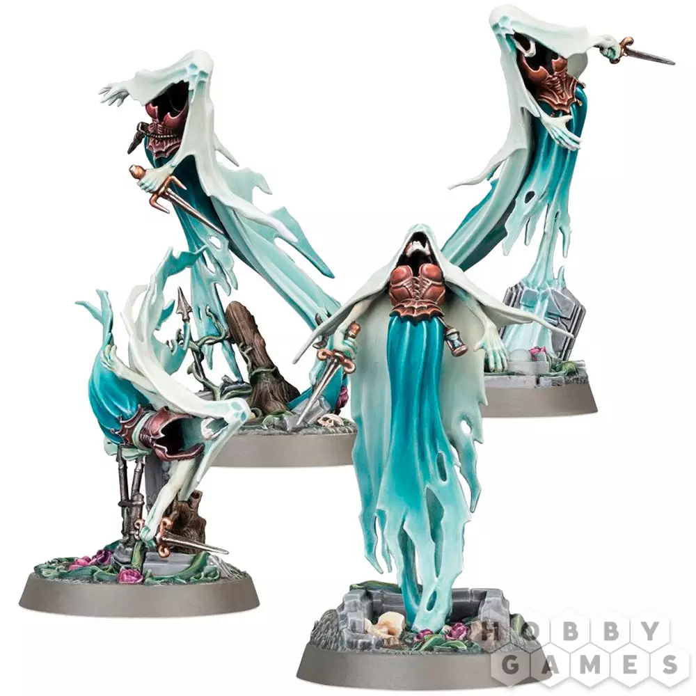 Набор состоит из 4 миниатюр упрощенной сборки линейки Nighthaunt, не требует клея и легко собирается. Литники изготовлены из пластика. Набор подойдет как начинающим, так и профессионалам – детализация моделей не уступает обычным. Зловещие Банши не имеют тел, лишь развевающиеся саваны и пустые доспехи, окутанные эфирным свечением, и черепа с широко раскрытыми ртами, заходящиеся в крике и плаче. Они парят над землей, сжимая в призрачных руках свои проклятые кинжалы.