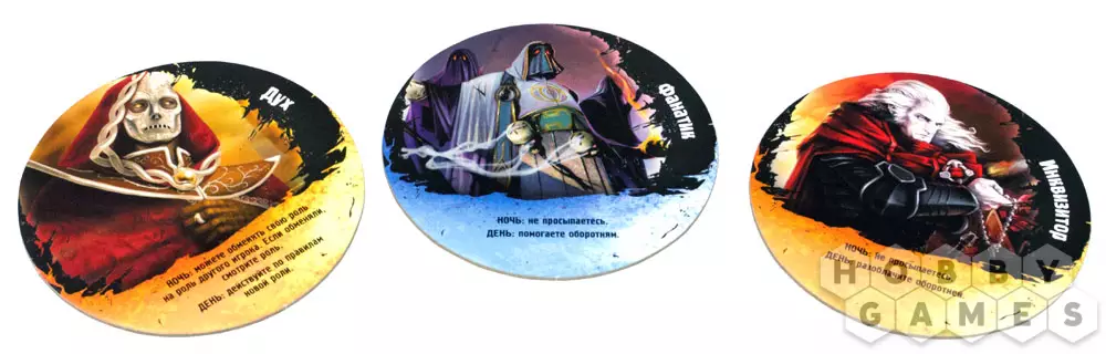 На каждую партию всегда рассчитывается больше карт ролей, чем игроков. Таким образом возможны ситуации, когда в игре, например, вообще не будет Оборотней. Однако, об этом никто не узнает до конца игры! Розданные роли лежат перед вами взакрытую, а оставшиеся роли в центре стола. Сама партия состоит всего из одной фазы ночи и дня.