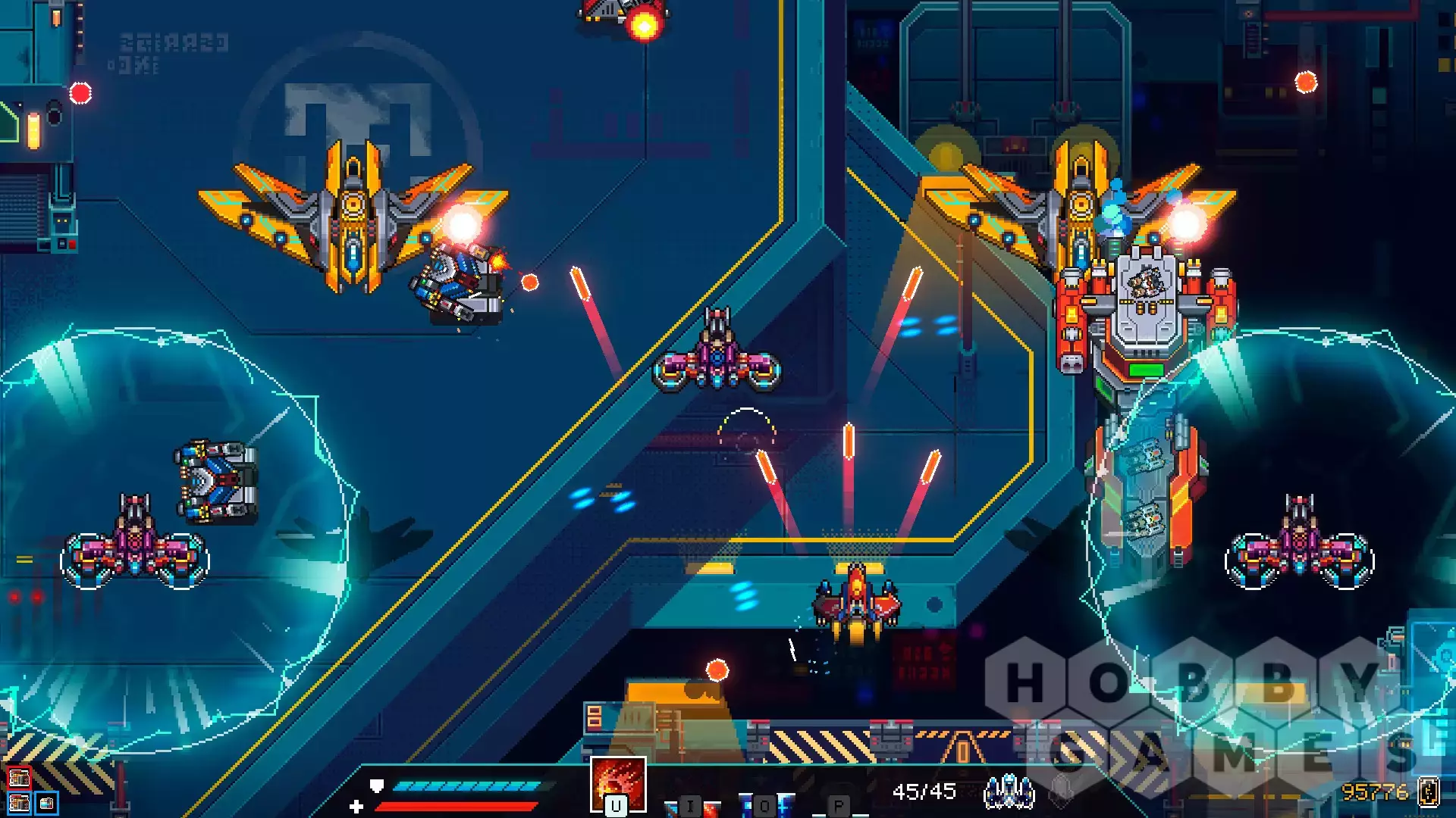 Destroy as many enemy ships as possible while skilfully dodging their attacking fire. After defeating mighty armadas, a formidable boss stands in your way. You need to watch, learn and anticipate the attacks of each boss to stand a chance of defeating them. Push yourself to your limits to complete the perfect run and beat the high score.