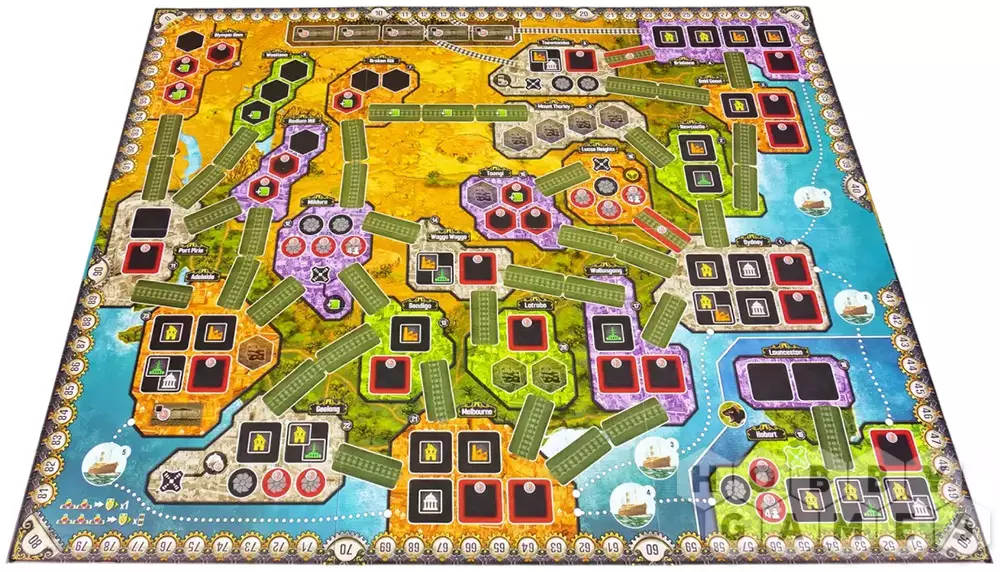 Ваш ход – это всегда выбор: строить, добывать или заряжать. Размещайте плитки действий, чтобы прокладывать железные дороги и активировать бонусы через цветовые совпадения. Заключайте контракты для мгновенных преимуществ, развивайте технологии и расширяйте сети городов. Ресурсы – талеры, рабочие и уран – нужно распределять мудро: они определяют ваш доход и влияют на конечный счёт. Игра продолжается до выполнения двух из пяти условий финала, таких как разблокировка всех технологий или достижение семидесяти очков.