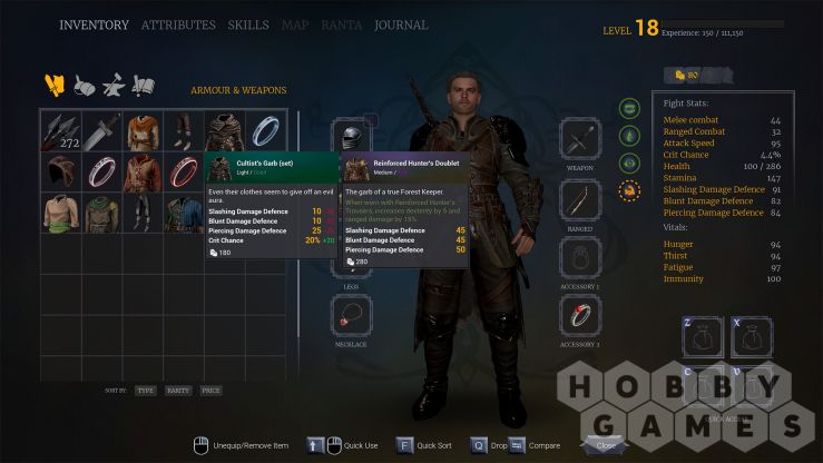 Learn to stand up for yourself using different weapons, environments, and active skills. Tailor your fighting style to suit you, from the agile rapier wielder to a heavy armour-clad knight, or create something unique!