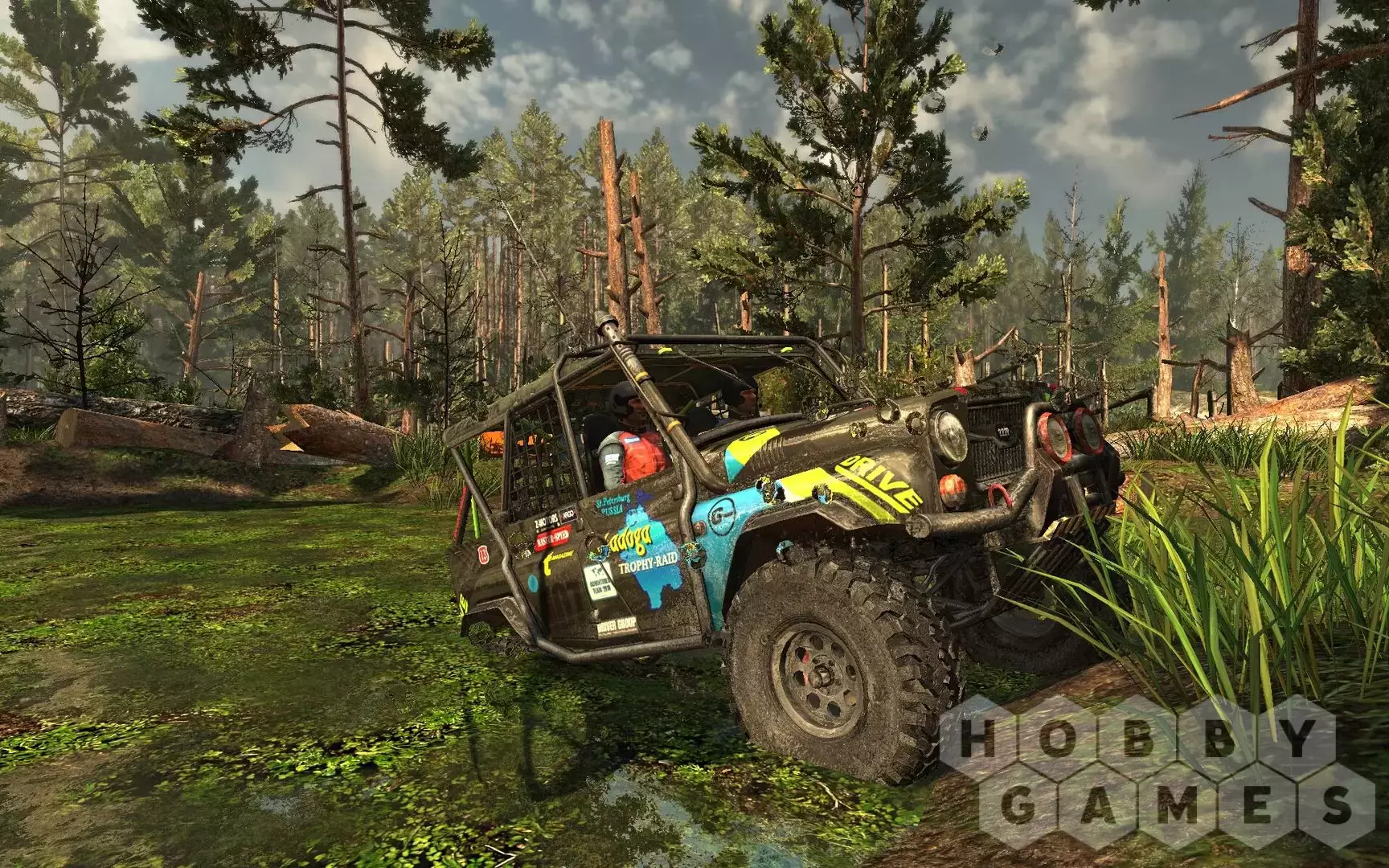 - В игре присутствуют как гонки по бездорожью, так и испытания болотами и грязью.
