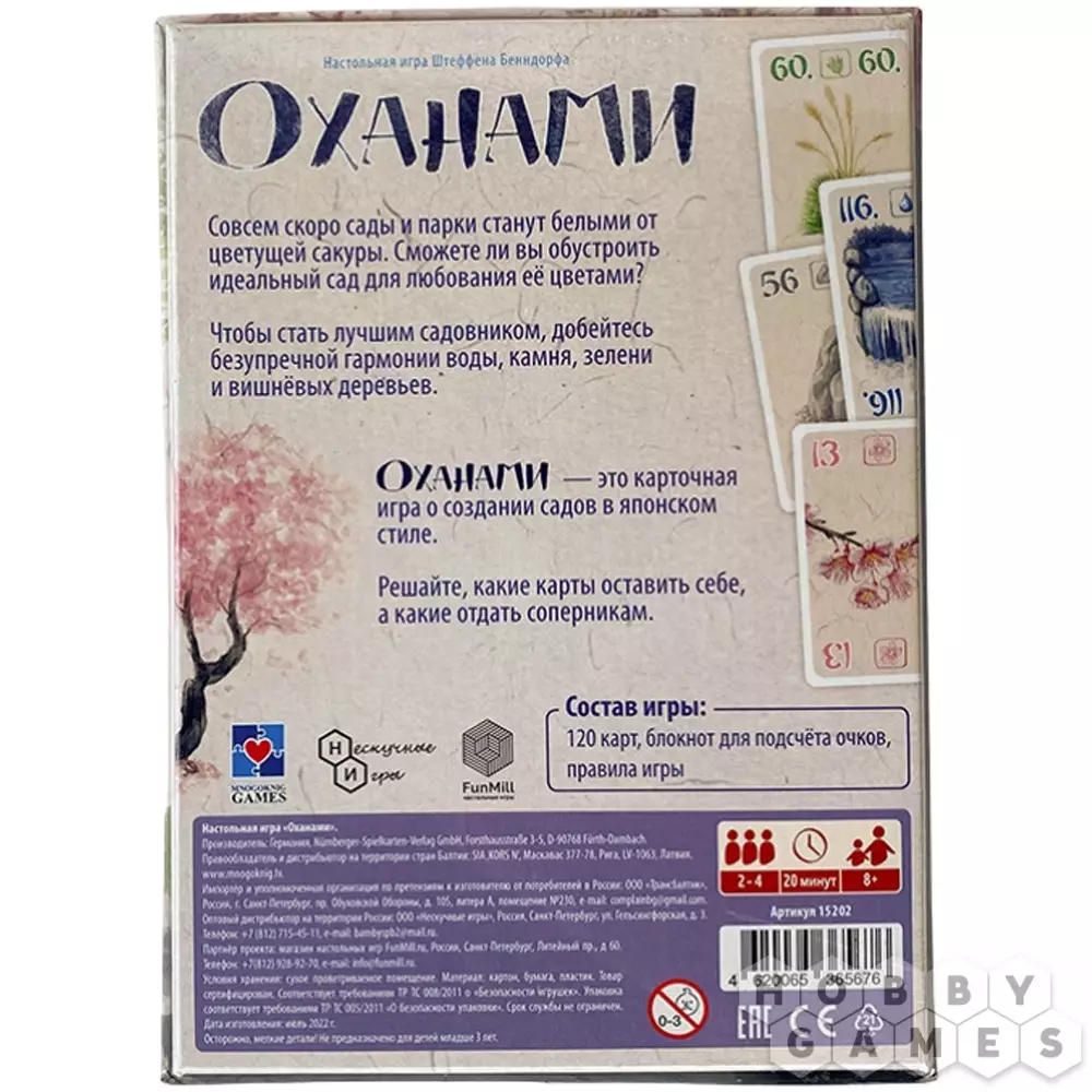 Оханами – это давняя японская традиция любования цветами, которая идёт в одном ряду с восхищением осенними листьями клёна или полной луной. Это уникальная часть японской культуры, которая очаровывает своей простотой и изяществом. А ещё "Оханами" – это настольная игра, в которой вы станете городскими садовниками, готовящимися к одному из самых значимых праздников. Ваша задача – создать на своём участке парка очаровательные аллеи, которые привлекут множество посетителей и принесут вам победные очки. Чтобы достичь вершины мастерства, стремитесь к гармонии между водой, камнем, зеленью и цветущими вишнёвыми деревьями, создавая парк мечты!