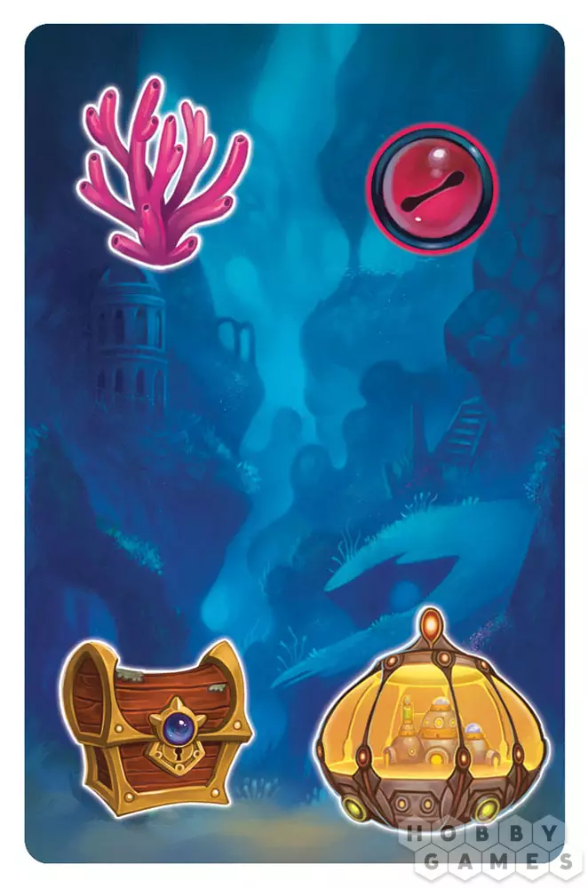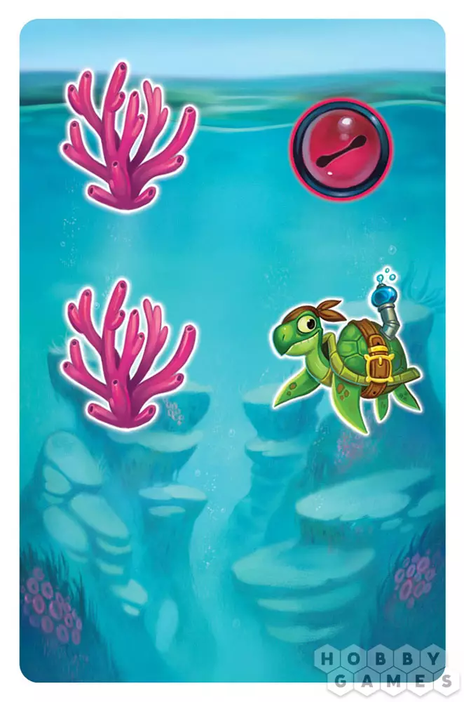 Каждый ход игроки получают карты погружения, из которых могут выбрать одну и выложить перед собой взакрытую. Дополнительную карту можно сыграть, потратив жетон топлива, но их у вас всегда будет мало. Когда все игроки готовы, карты вскрываются. Карты должны выкладываться строго в один ряд слева направо, во втором раунде образуется второй ряд, а в третьем – третий. В результате получится большая карта вашего путешествия по водным пространствам в глубины океана.