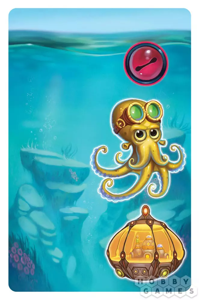 Подводные базы на картах помогут вам получить одно из пяти улучшений для вашей лодки, но для этого в этом же ряду, но слева от базы должны находиться кристаллы. Улучшенный гребной винт позволит получать больше очков каждый раунд, двигатель позволит тратить больше топлива и выкладывать больше карт в свой ход, с помощью рубки вы будете получать больше карт на выбор, за счёт расширенного аквариума можно содержать больше рыб и получать больше очков, а воздушная шлюпка позволит использовать больше водолазов.