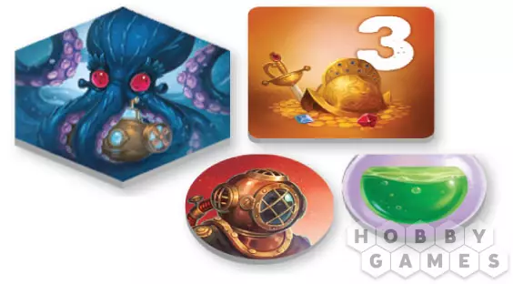 Также очки можно и потерять – игрок, собравший в раунде наибольшее количество глаз Кракена, потеряет столько победных очков, сколько будет указано на верхнем жетоне Кракена.