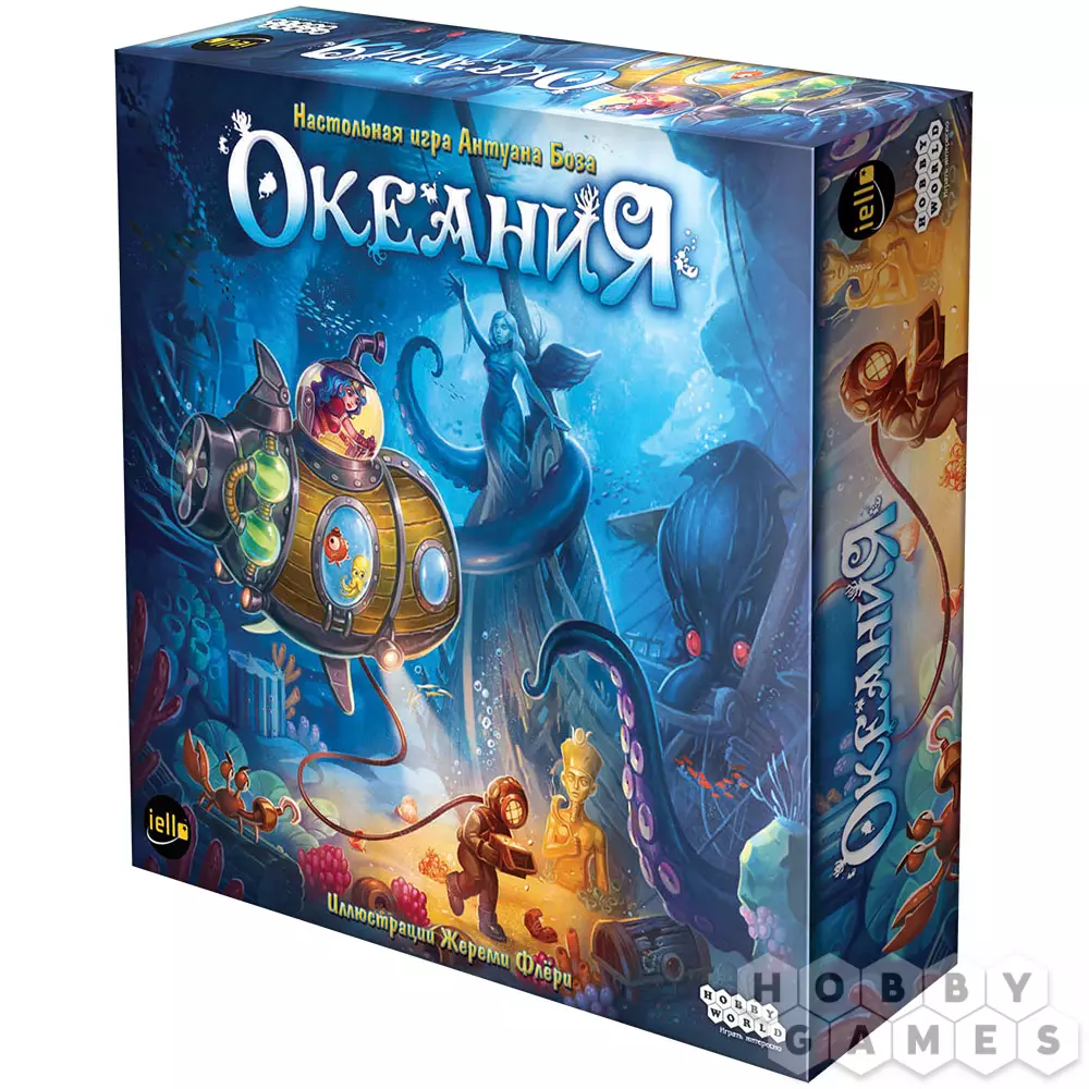 "Океания" – это великолепная, яркая и захватывающая приключенческая игра для детей и взрослых! Став капитанами своих подводных лодок, от 2 до 5 игроков отправятся на поиски приключений в прекрасный подводный мир Океании! Заводите свою любимую субмарину, ныряйте на ней в бездонные пучины океана и постарайтесь открыть как можно больше интересного! Вас ждут сокровища, подводные жители, коралловые рифы и даже Кракены! Прокладывайте свой маршрут с умом, а если уверены в себе, то потратьте топливо, чтобы обогнать конкурентов и исследовать побольше! Отправляйте водолазов на поиски сокровищ, посещайте подводные базы и улучшайте свою лодку!