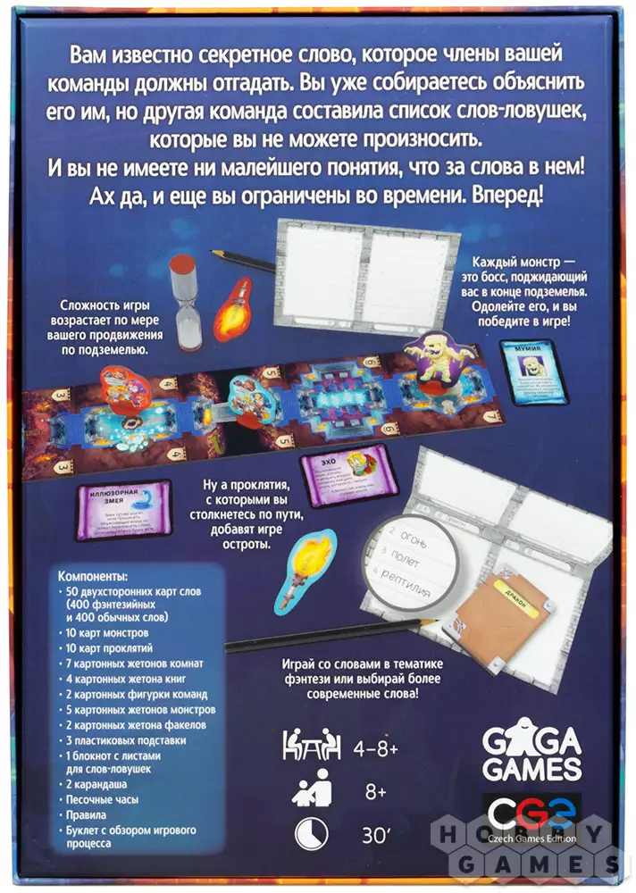 В игре будут соревноваться две команды, которым нужно выбраться из запутанных катакомб. Пройти каждую из локаций можно одним способом – отгадать кодовое слово. В процессе отгадывания нужно будет не только пораскинуть мозгами, но и избежать слов-ловушек от команды соперников, которые озвучивать категорически воспрещается. Ну а в конце подземелья вас будет ожидать невероятная встреча с боссом – монстром, которого можно одолеть, лишь отгадав сразу 10 кодовых слов. Одна неловкая фраза – и вы остались в катакомбах ещё на один ход.