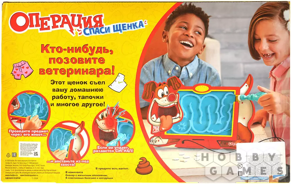 "Операция "Спаси щенка" – это интерактивная игра для детей, с которой они могут почувствовать себя самыми настоящими ветеринарами. Нужно избавить собачку от посторонних предметов в организме! С помощью магнитного прибора удалите их из щенка, чтобы он снова мог почувствовать себя здоровым. Но нужно быть крайне осторожным: одно неправильное движение, и собачке будет нехорошо.