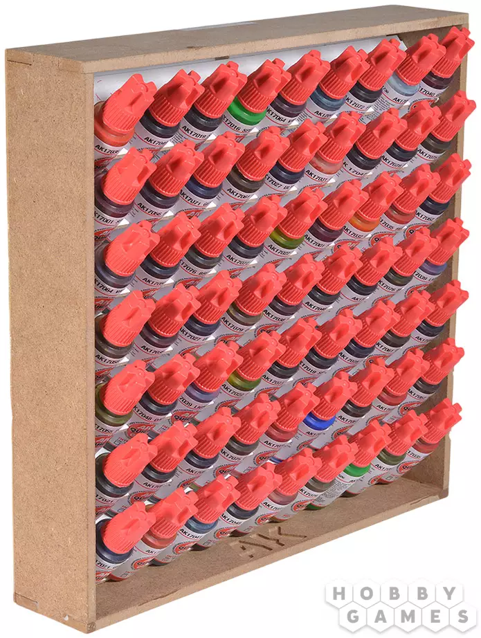 Органайзер-стойка для красок от AK Interactive станет надёжным подспорьем в творческом пути. Деревянная конструкция и оптимизированное расположение ячеек позволит надёжно зафиксировать баночки с красками и держать всю палитру на виду.