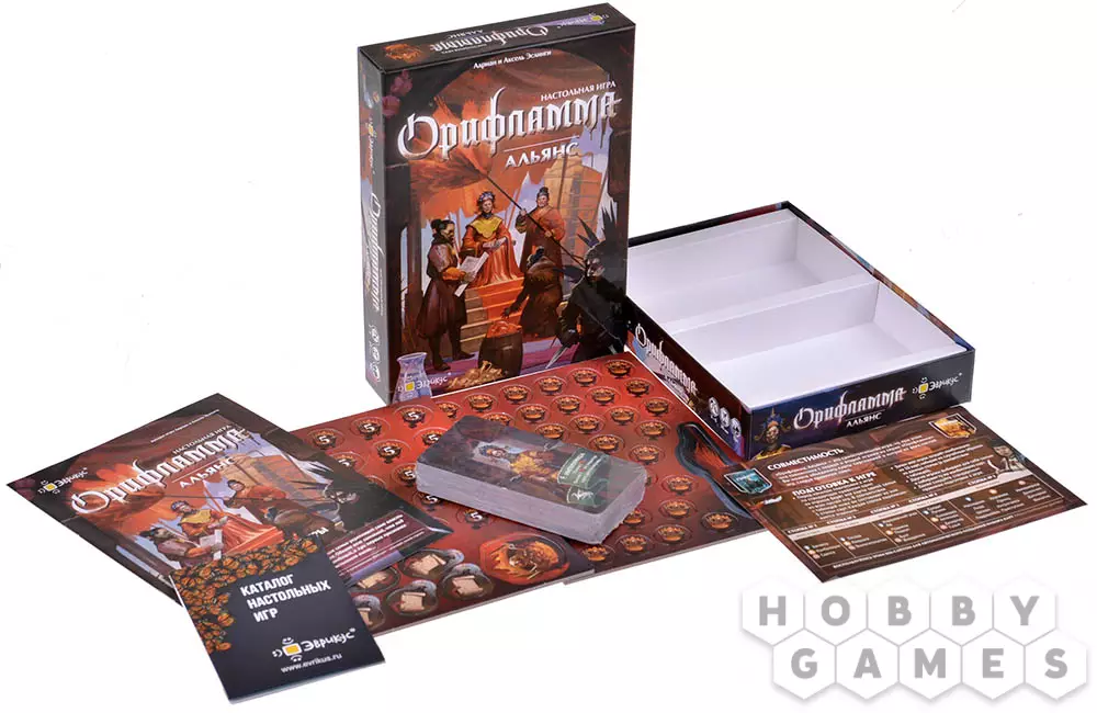 "Альянс" – это третья часть серии "Орифламма", посвящённой дворцовым интригам. Атмосферу европейского средневековья разбавили пёстрые краски востока, но пусть смена обстановки вас не обманет: простора для махинаций и интриг здесь ещё больше, чем в предыдущих играх. Основное нововведение "Альянса" – инструменты для заключения союзов с другими игроками. Обменивайтесь победными очками, делайте предложения и объединяйтесь – но не забывайте, что победителем может выйти только один! Искушённые интриганы найдут много интересных способов стравить оппонентов друг с другом и добиться своего необычными комбинациями. Чтобы углубить игровой процесс, в "Альянсе" также введена механика резервирования: теперь вы можете откладывать карты перед собой, чтобы получать новые преимущества.