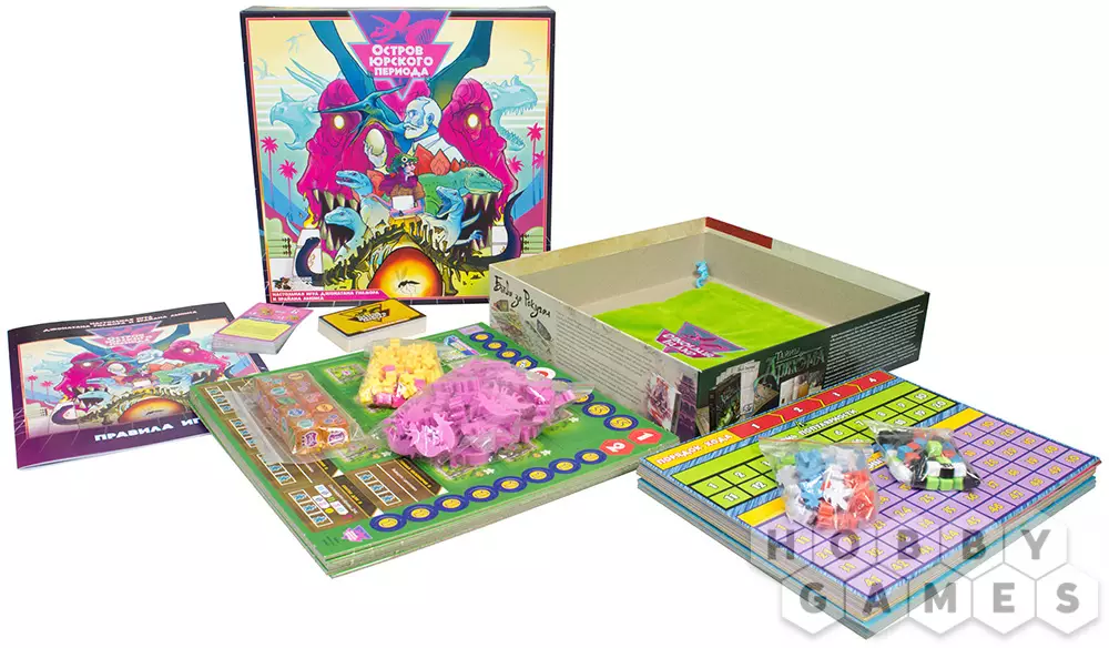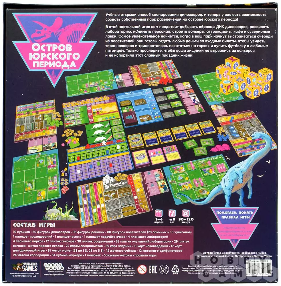"Остров юрского периода" – это экономическая настольная игра для 1–4 игроков, созданная по мотивам романа Майкла Крайтона "Парк юрского периода" и последующего фильма Стивена Спилберга. Как говорилось выше, все игроки берут на себя роли управляющих парков юрского периода. Вам предстоит не только управлять парком, но и постараться сделать его больше и лучше, чем у Ваших конкурентов.