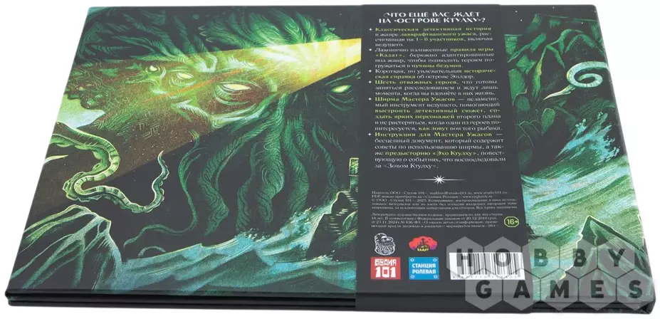 "Остров Ктулху" – это настольная ролевая игра, где классический лавкрафтовский ужас переплетается с напряжённым детективным расследованием. Вы отправитесь на затерянный остров Эплдор, где под живописными пейзажами скрываются древние кошмары. Вашими проводниками в этот жутко увлекательный мир станут лаконичные, но атмосферные правила системы "Кадат", специально адаптированные для этого приключения, а также краткая, но увлекательная история острова, пропитанного тайнами. Шесть готовых персонажей уже ждут своего часа, чтобы вступить в схватку с непостижимым. Мастер Ужасов тоже не остался без подарков – для него в комплекте идёт специальная ширма, помогающая управлять ходом игры, создавать запоминающихся второстепенных персонажей и держать игроков в напряжении. А в дополнение – подробная инструкция с советами по ведению сессий и предыстория, раскрывающая мир вселенной.