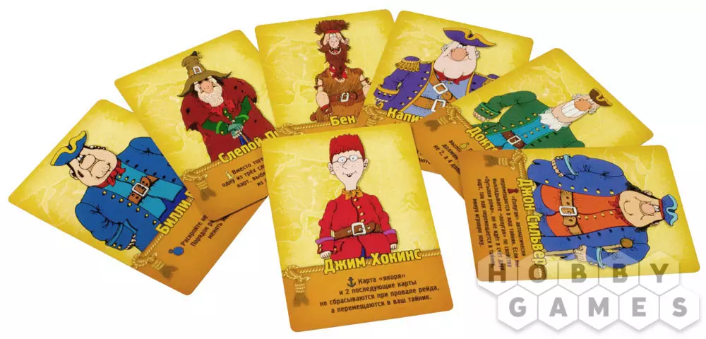 - Якорь – когда рейд провален, все карты, выложенные до «якоря», перемещаются к вам в тайник. Своеобразная пиратская "страховка"