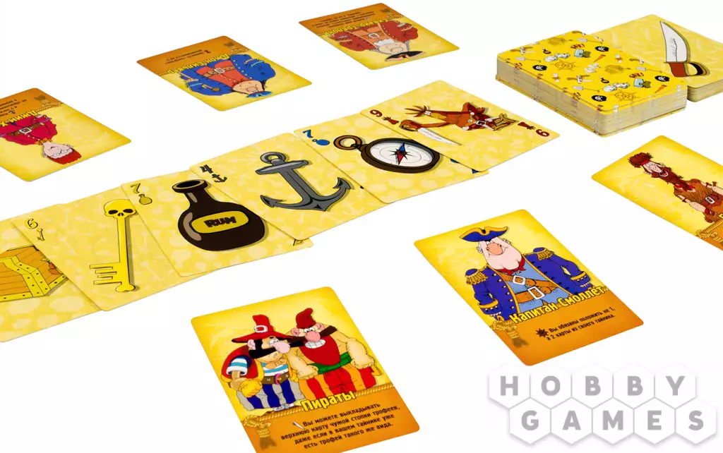 - Ключ и сундук – забрав в свой тайник обе эти карты за один ход, вы сможете получить из стопки сброса столько же карт, сколько собрали за этот рейд! Пираты требуют больше сокровищ!