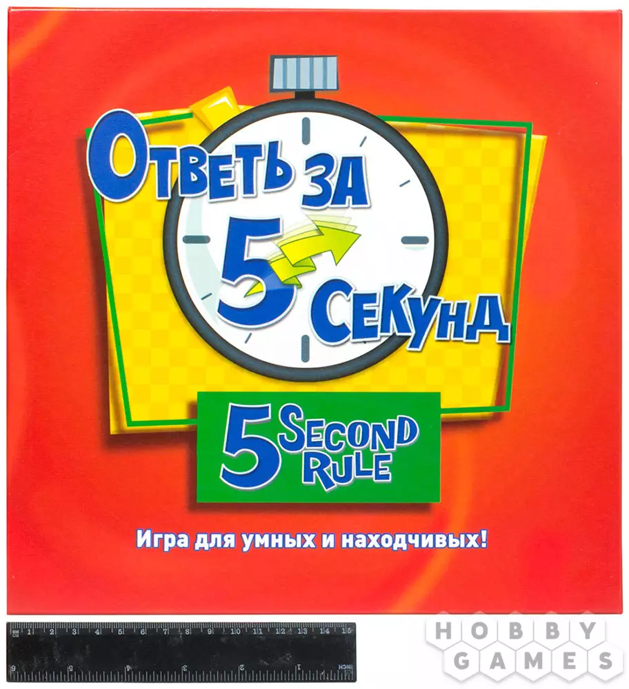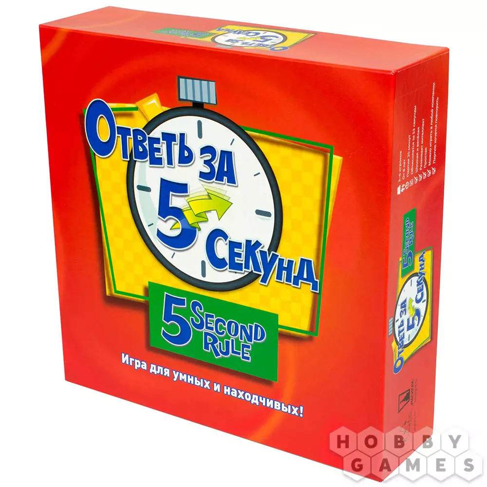 "Ответь за 5 секунд" – это быстрая и забавная викторина для весёлой компании. Правила крайне просты – нужно ответить на вопрос из карточки, и справиться с этим, как нетрудно догадаться из названия, за пять секунд. Для удобного контроля времени в комплекте с игрой вы найдёте забавный таймер-спираль с железными шариками внутри.