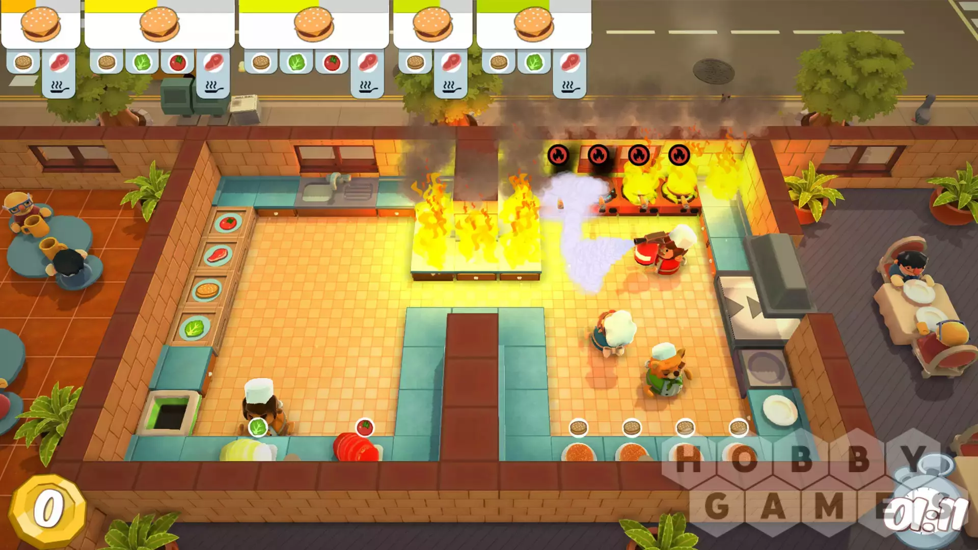 OVERCOOKED – кулинарная игра для 1-4 игроков. Работайте в команде и готовьте блюда, пока клиенты не покинули ресторан. Заточите ножи и отряхните поварские куртки, стейки очень высоки!