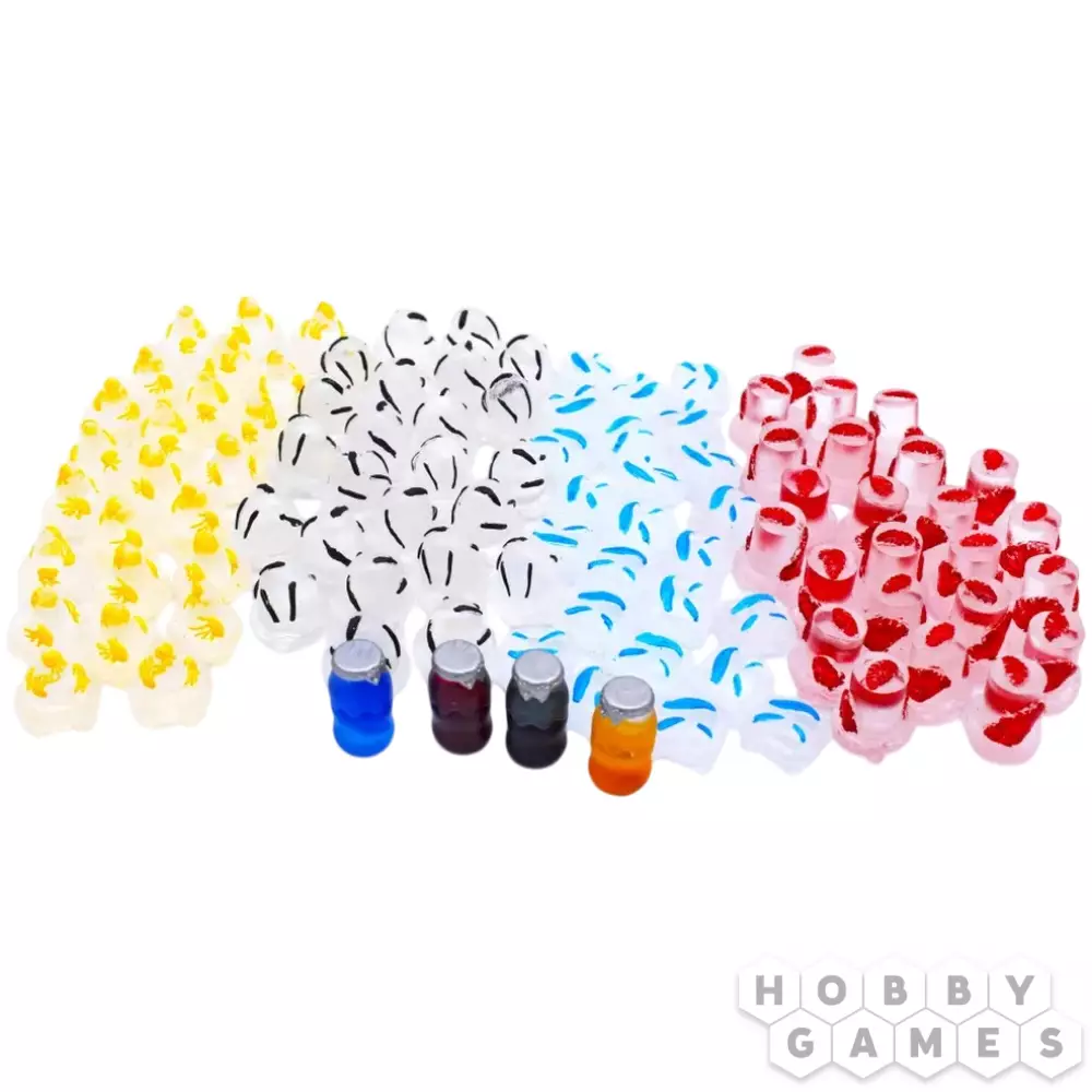 Элитные компоненты от Kapibar Workshop созданы с особым вниманием к качеству: литьевой полиуретан и эпоксидная смола, обработка в вакууме и под давлением, ручная роспись с тонкой проработкой деталей. В набор входит 100 миниатюр, включая 4 флакона с лекарствами, которые не только украсят игру, но и сделают её тактильно приятнее. Превратите каждую партию в "Пандемии" или "Пандемии: Наследие" в незабываемое приключение с этим коллекционным набором!