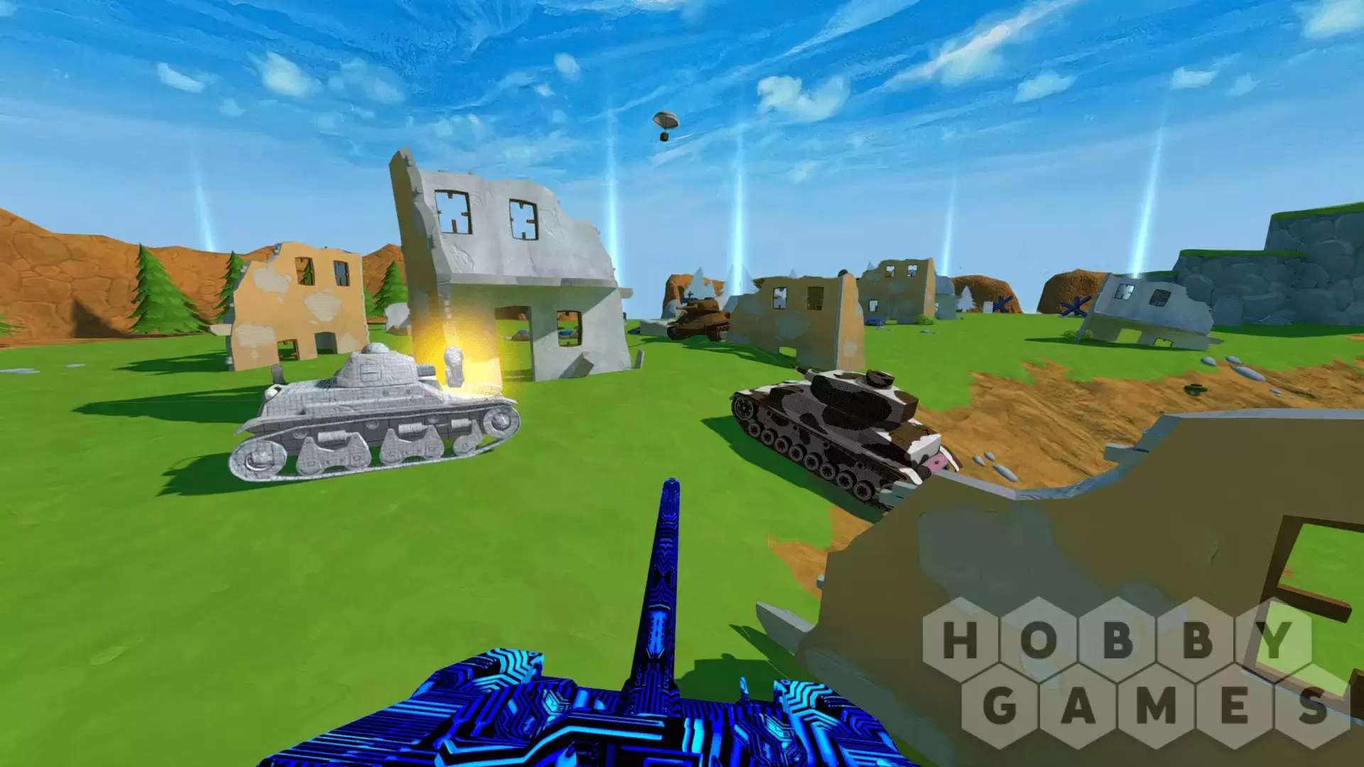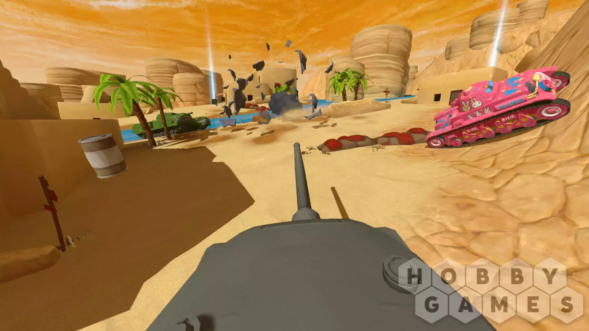 PANZER PANIC VR — инновационная игра для виртуальной реальности, в которой вы сможете взять на себя управление боевым танком. Выбирайте машину из обширного парка и настраивайте ее под себя. Бросайте вызов троим друзьям в локальной сетевой игре или оттачивайте навыки против хитрого ИИ на разных динамичных картах. Кто вы — охотник или жертва? По силам ли вам принести победу своей команде?