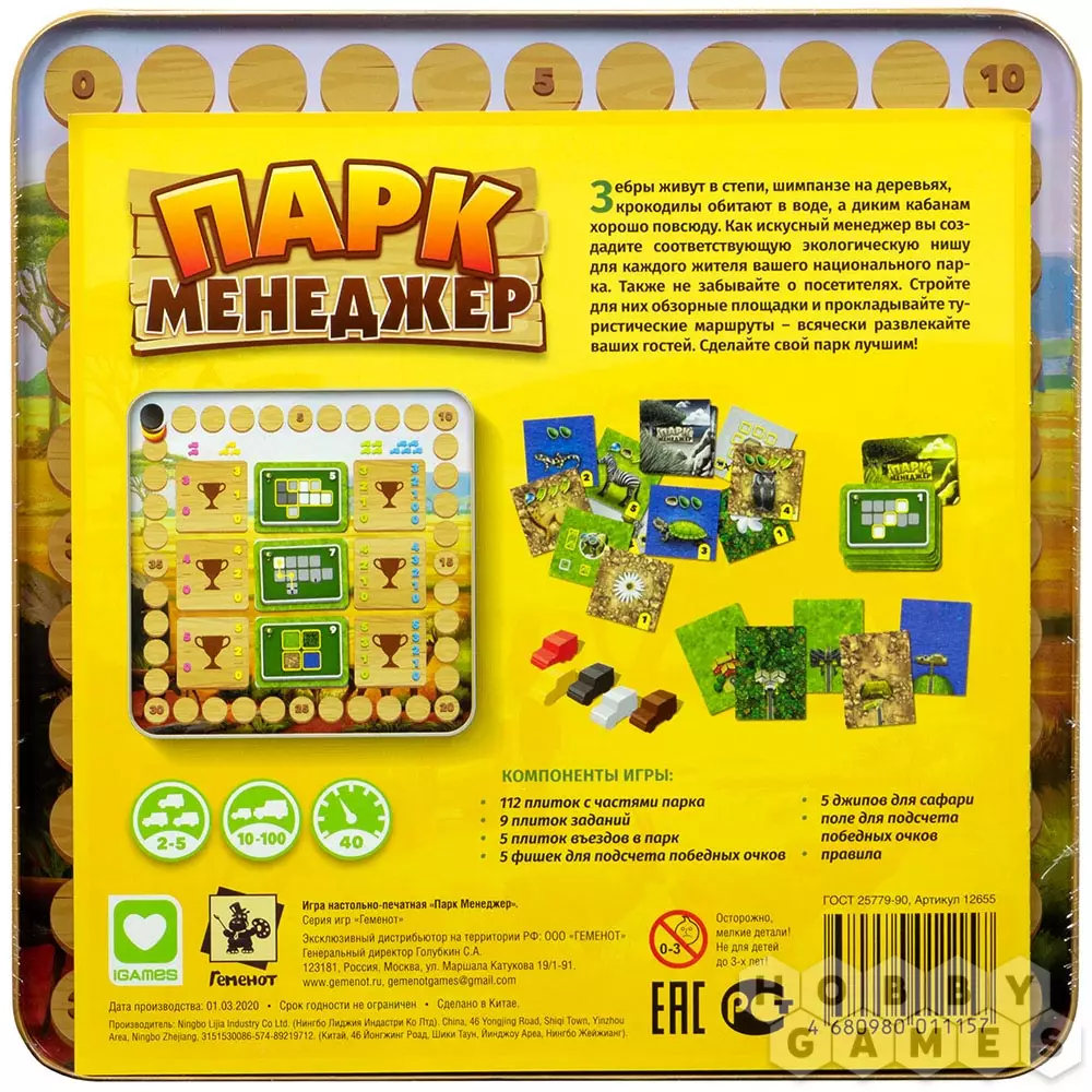 Возглавьте заповедник и совмещайте создание комфортных условий для его обитателей с развитием туристической сферы. "Парк Менеджер" – это весёлая настольная игра о трудовых буднях сотрудника национального парка. Правила легко освоить, но над многими нюансами игрового процесса придётся подумать! Каждому животному для комфорта требуется определённая среда обитания, к которой его вид наиболее приспособен. Например, бегемотам, выдрам и крокодилам хорошо в воде, обезьянам нужны деревья, а антилопам – открытая равнинная местность, поросшая травой. В природе животные обитают в своих климатических зонах и не сталкиваются с обитателями отдалённых от себя регионов, но в вашем парке всё по-другому и постоянно нужно искать компромисс. А ведь ещё необходимы обзорные площадки и другие условия для посетителей, иначе парк не будет приносить доход.