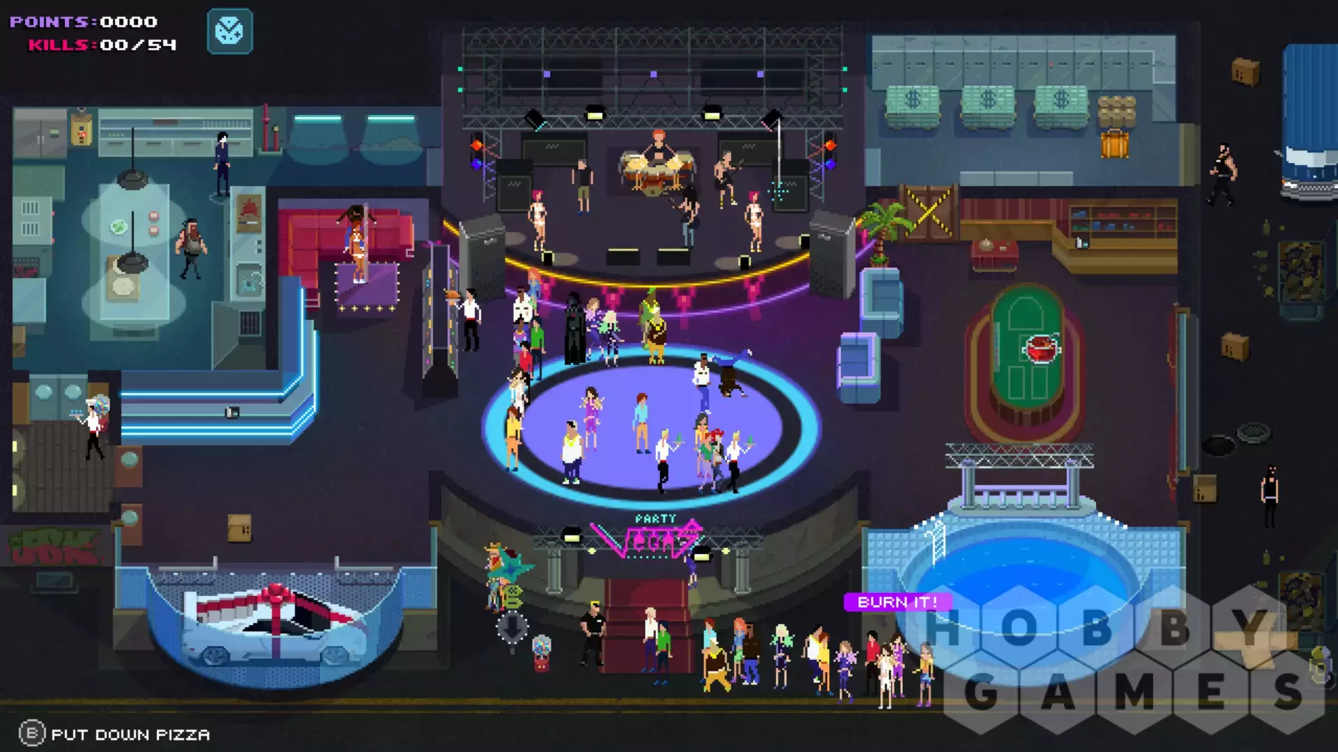 Party Hard генерирует уровни и обстановку, стимулируя поиск разных способов убийства. В лучших традициях тайных операций, главная цель не попадаться, хватая очередную ничего не подозревающую жертву. Смешиваемся с толпой, и танцуем как ни в чем не бывало.