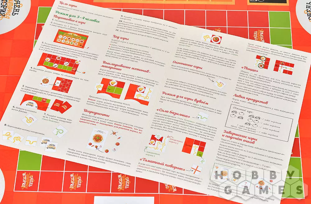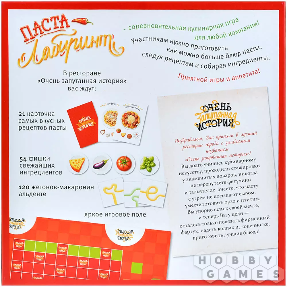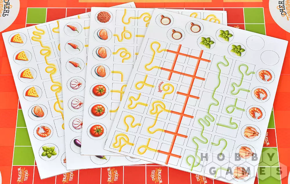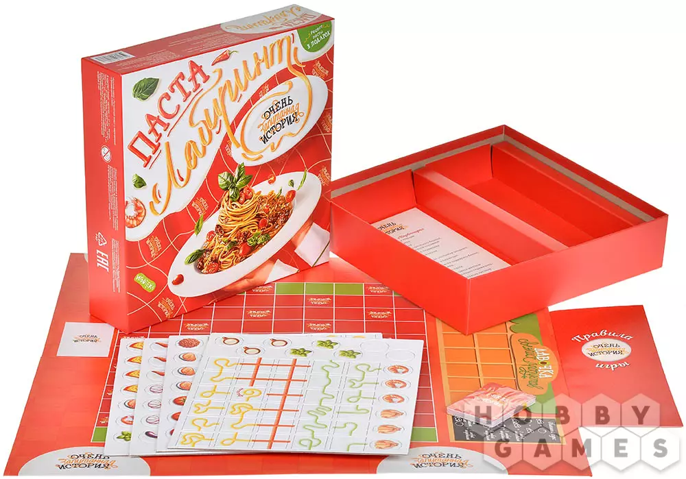 Чтобы преуспеть в этом непростом деле, игроки выстраивают на поле собственную непрерывную макаронину, собирая по пути необходимые ингредиенты. Найденные продукты можно сразу добавлять в пасту или обменивать в лавке на то, что нужнее в данный момент. А особые жетоны добавят остроты – они дают преимущества и помогают справиться с заданиями быстрее соперников.