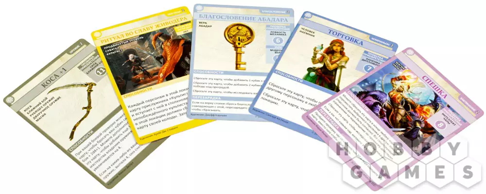 Раз в ход вы можете исследовать выбранную локацию, для этого откройте верхнюю карту локации и разыграйте её