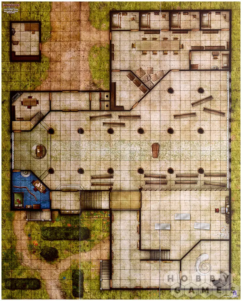 В самом дальнем углу корвосского кладбища расположился собор Фаразмы, что является богиней жизни и смерти. Комнаты этого собора и склеп под ним – вот то, что предстоит исследовать отважным героям. Эти локации вы и найдёте с двух сторон этого игрового поля, которое подходит не только для приключения "Закатные тени", но и для реализации ваших задумок.