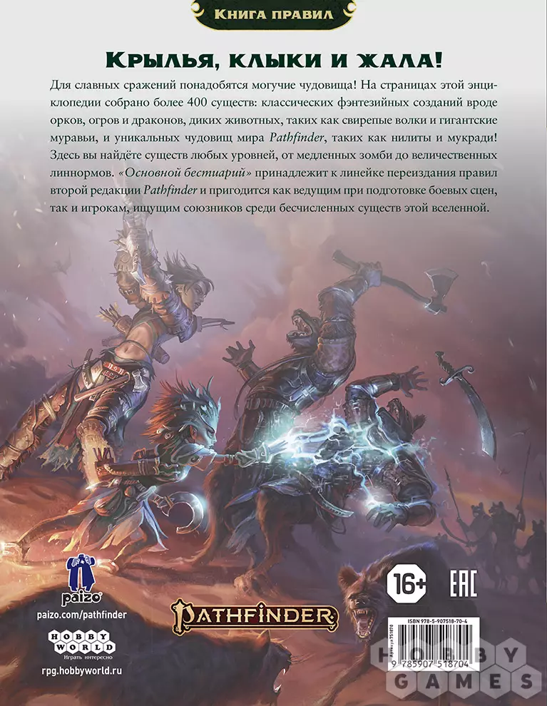Вы встретите существ любого уровня угрозы – от немощных зомби до величественных линнормов. Основной бестиарий, созданный для второй редакции Pathfinder, станет незаменимым источником вдохновения для Мастера, готовящего эпичные схватки, и для игроков, ищущих верных союзников среди обитателей этих фэнтезийных земель.