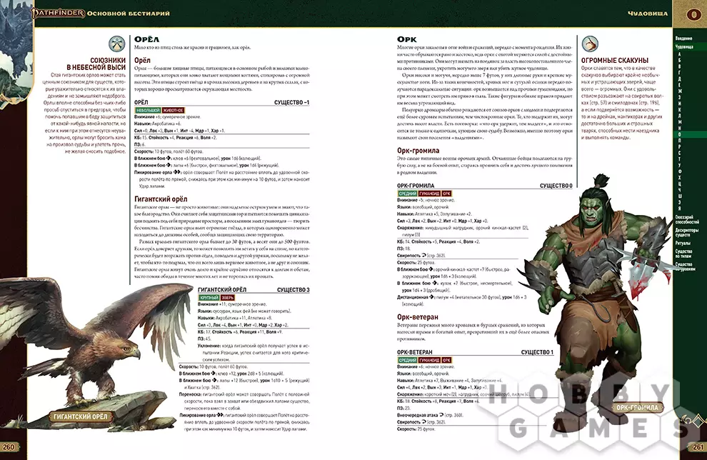 Это книга в твёрдом переплёте, отличающаяся превосходным полиграфическим исполнением. В ней собраны исчерпывающие сведения о генезисе, ареалах обитания, укладе жизни, особенностях поведения и повадках множества созданий, населяющих вселенную Pathfinder. Каждое описание сопровождается детализированными иллюстрациями и полным комплектом игровых характеристик, необходимых для интеграции этих существ в ваши кампании.