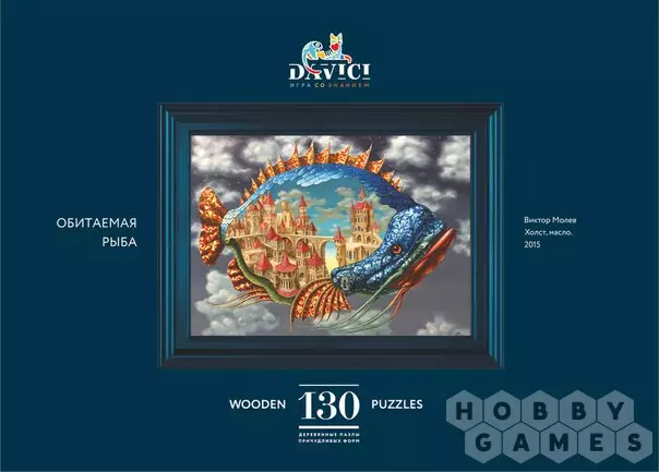 Человек всегда мечтал взмыть в небо как птица. Но один волшебный народ рассудил иначе. Вместо птицы рассекать синеву неба взмыла удивительная рыба, а вместе с ней в путешествие отправился целый город! Глубоко под чешуёй этого летающего чуда вы обнаружите множество зданий с завораживающей архитектурой. Здесь вы увидите высокие шпили дворцов, мосты, раскинувшиеся над зданиями, а так же домики местных жителей. Тут живут изобретательные хранители ключей и замков. О том, как они выглядят и чем занимаются, вы сможете узнать из фрагментов самого пазла. Все фигурки уникальны и представляют собой жителей, их работу или городские постройки.