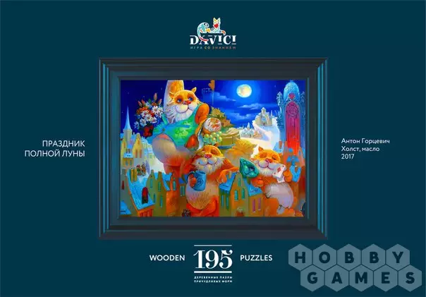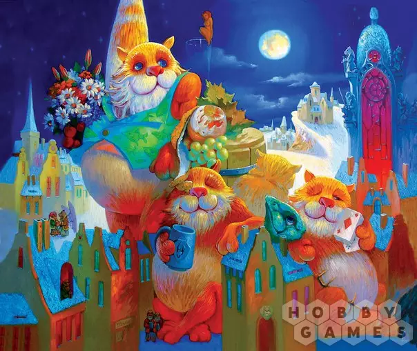 Вам предстоит собрать картину художника Сергея Адеева "Праздник полной луны". В яркое полнолуние на городской площади собрались закадычные друзья – три толстых рыжих кота. Этой ночью так хорошо и безмятежно! Но это лишь внешнее спокойствие. Начав собирать эту головоломку, вы обнаружите в деталях пазла множество жутких персонажей – призраков, ведьм, летучих мышей и прочей нечисти. Хватит ли у вас смелости завершить начатое?
