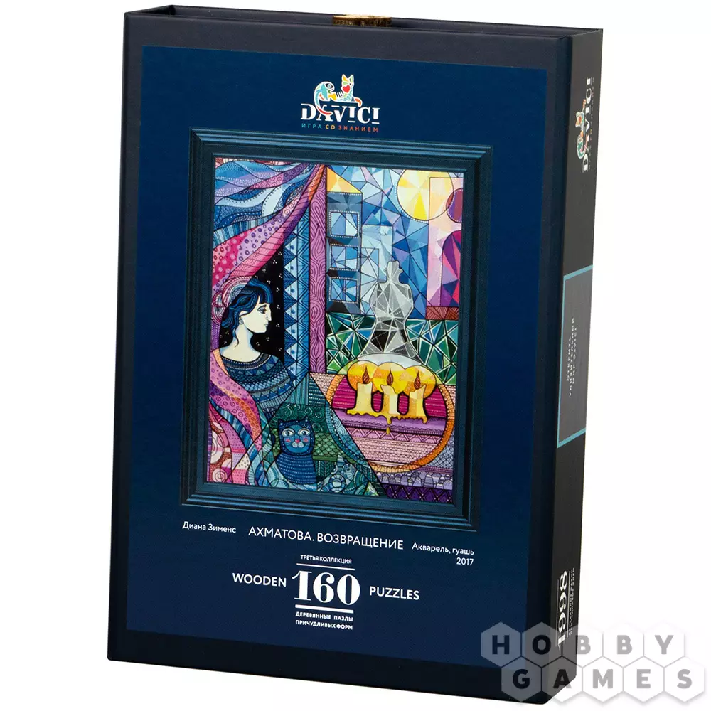 Пазл "Ахматова. Возвращение" основан на картине отечественной художницы из Твери Дианы Зименс, написанной ею в 2017 году. В деталях пазла вам встретятся и юная влюблённая девушка, и одинокая грустная женщина, и сама поэтесса, декламирующая свои стихи со сцены литературно-художественного кабаре "Бродячая собака". Томик поэзии, канделябр, перо и цветы – словно отображение ахматовской поэзии