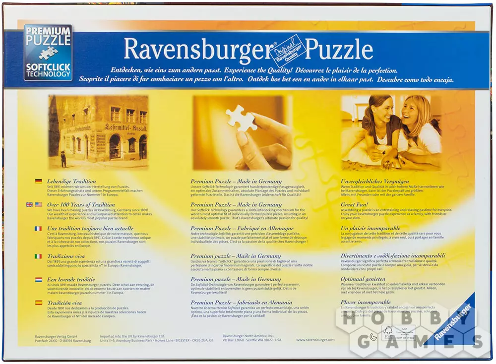 Пазлы Ravensburger изготавливаются из качественного картона, ярко оформляются и аккуратно вырубаются на современных станках. Неважно, опытный ли вы любитель пазлов, который уже собрал не одну большую картину, или начинающий энтузиаст – вы обязательно найдёте что-то по вкусу в линейке компании.