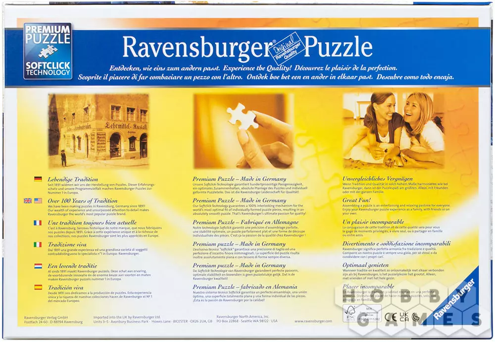 Пазлы Ravensburger изготавливаются из качественного картона, ярко оформляются и аккуратно вырубаются на современных станках. Неважно, опытный ли вы любитель пазлов, который уже собрал не одну большую картину, или начинающий энтузиаст – вы обязательно найдёте что-то по вкусу в линейке компании.