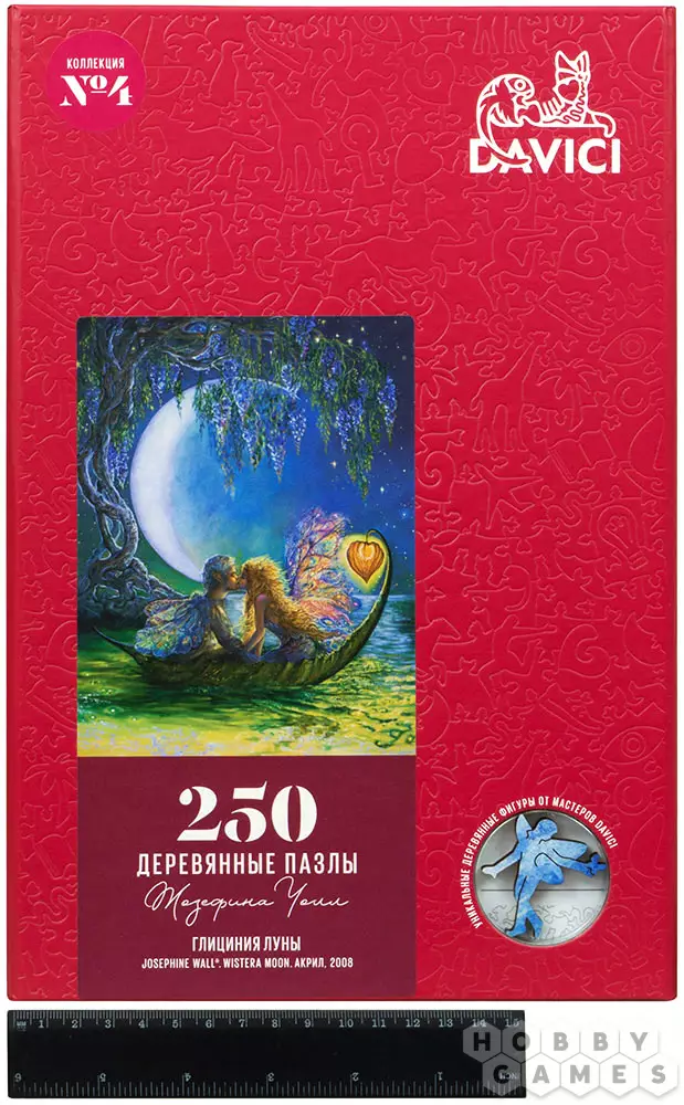 Пазл "Глициния луны" основан на картине на картине британской художницы Жозефины Уолл, написанной ею в 2009 году. Её работы отличаются многообразием деталей, и их хочется рассматривать снова и снова. В деталях этого пазла спряталось множество крохотных обитателей этого волшебного мира – влюблённых эльфов, а также различных насекомых и растений. После того как набор будет собран, вы сможете найти на нём объёмный домик эльфа!