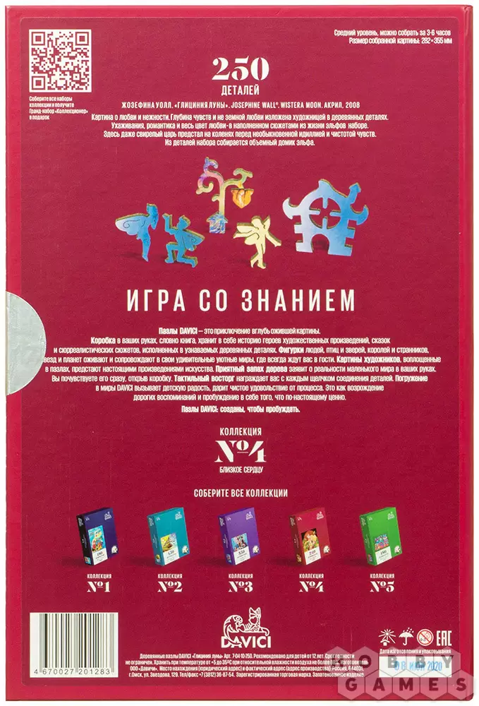 Добро пожаловать в удивительный мир художественных деревянных пазлов от компании DaVICI. Любовь к пазлам выходит на новый уровень и удовольствие от процесса может увлечь за собой даже тех, кого раньше не тянуло собирать пазлы. Чарующие формы деталей, прекрасные картины и натуральное дерево создают уникальные и неповторимые пазлы DaVICI. Каждый пазл полон загадок, отсылок и сюрпризов, которые будут открываться вам по мере сборки картины!