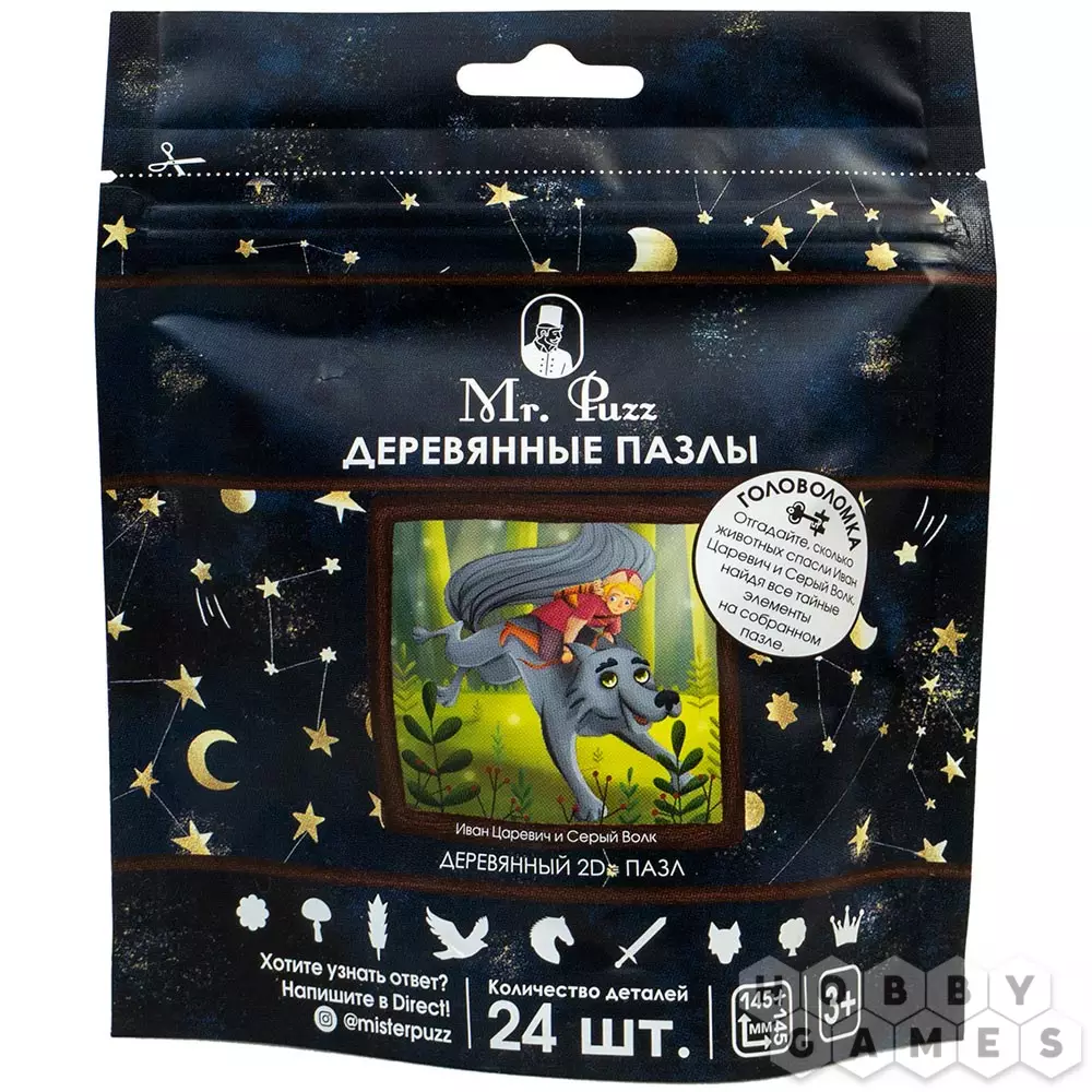 После сборки данного пазла вам дополнительно предстоит решить головоломку: сколько животных спасли Иван Царевич и Серый Волк?