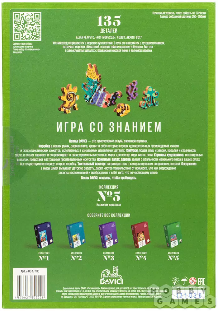 Не верьте, что коты и кошки ужасно боятся воды! Пазл "Кот-мореход" расскажет вам об увлекательном путешествии пушистого мореплавателя. Герой этого произведения – настоящий морской волк! По мере сборки пазла вы узнаете о том, кто повстречался хвостатому капитану в путешествии. Другие путешественники, морские обитатели и необычные морские секреты. Послания в бутылках, якоря и всевозможные виды плескающихся волн скрылись в деталях этого деревянного пазла.