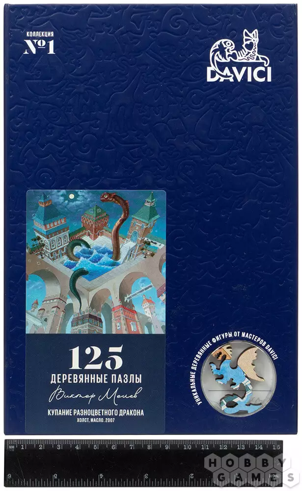 Деревянные пазлы DaVICI уникальны своей неповторимой нарезкой элементов. В каждом наборе среди деталей головоломки вы найдёте фигурки людей, животных, зданий, персонажей, которые тесно связаны по смыслу с собираемой картиной. Пазл среднего уровня, собирается от одного до трёх часов.