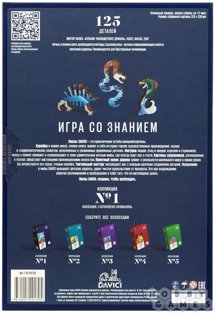 Открыв коробку с пазлом, вы сможете познакомиться с этими тварями поближе, ведь именно их фигурки вы найдёте в деталях головоломки. Кроме лягушек, ящериц и змей вы, конечно же, увидите несколько драконов. Расположив их по своим местам, вы сможете лицезреть главного дракона во всей красе!