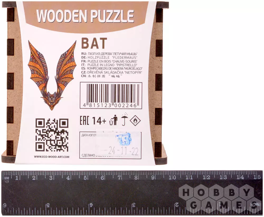 Деревянный пазл для детей и взрослых, фигурный пазл с уникальными деталями Eco Wood Art "Летучая Мышь" размера S – это настоящая головоломка, ваша ловкость может пригодиться в сборке. Пазл изготовлен по оригинальной иллюстрации знаменитого художника Андреаса Прайса.