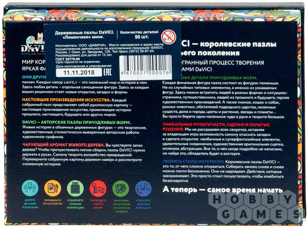Пазл из мини-коллекции DaVICI, состоящий из 90 деталей. Уровень сложности начальный, среднее время сборки – 1 час.