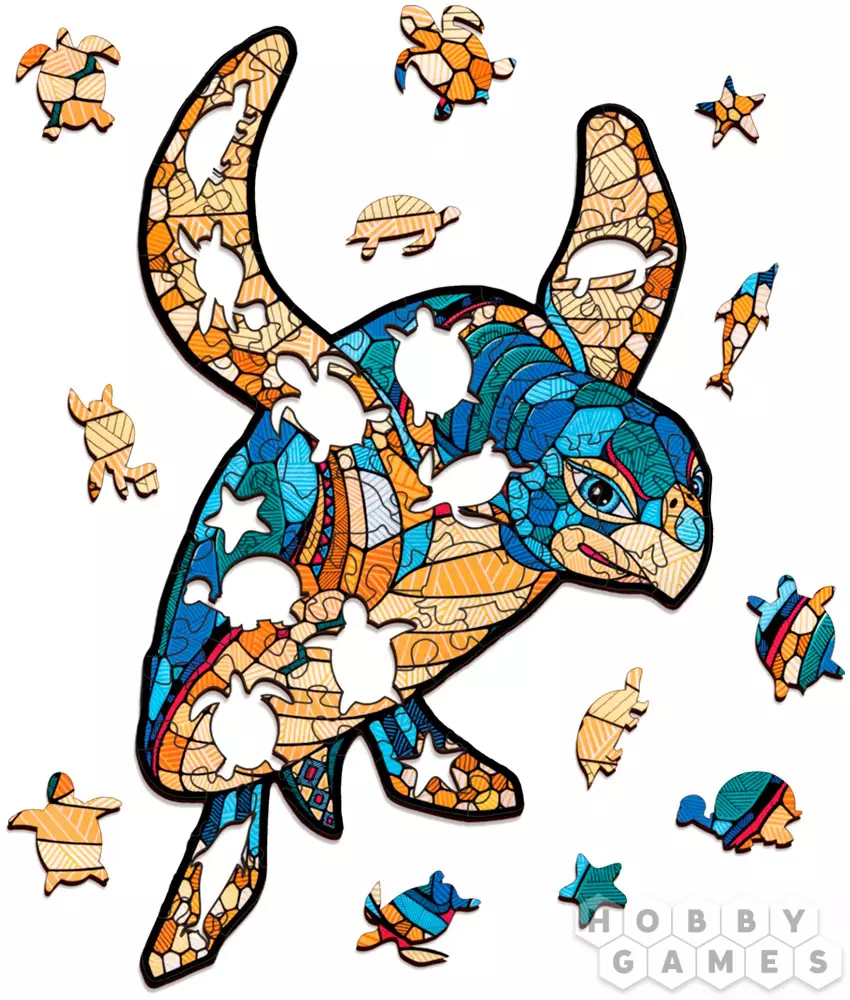 Деревянный пазл для детей и взрослых, фигурный пазл с уникальными деталями Eco Wood Art "Морская Черепаха" размера S – это настоящая головоломка, ваша ловкость может пригодиться в сборке. Пазл изготовлен по оригинальной иллюстрации знаменитого художника Андреаса Прайса.