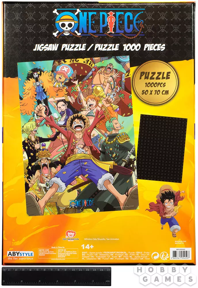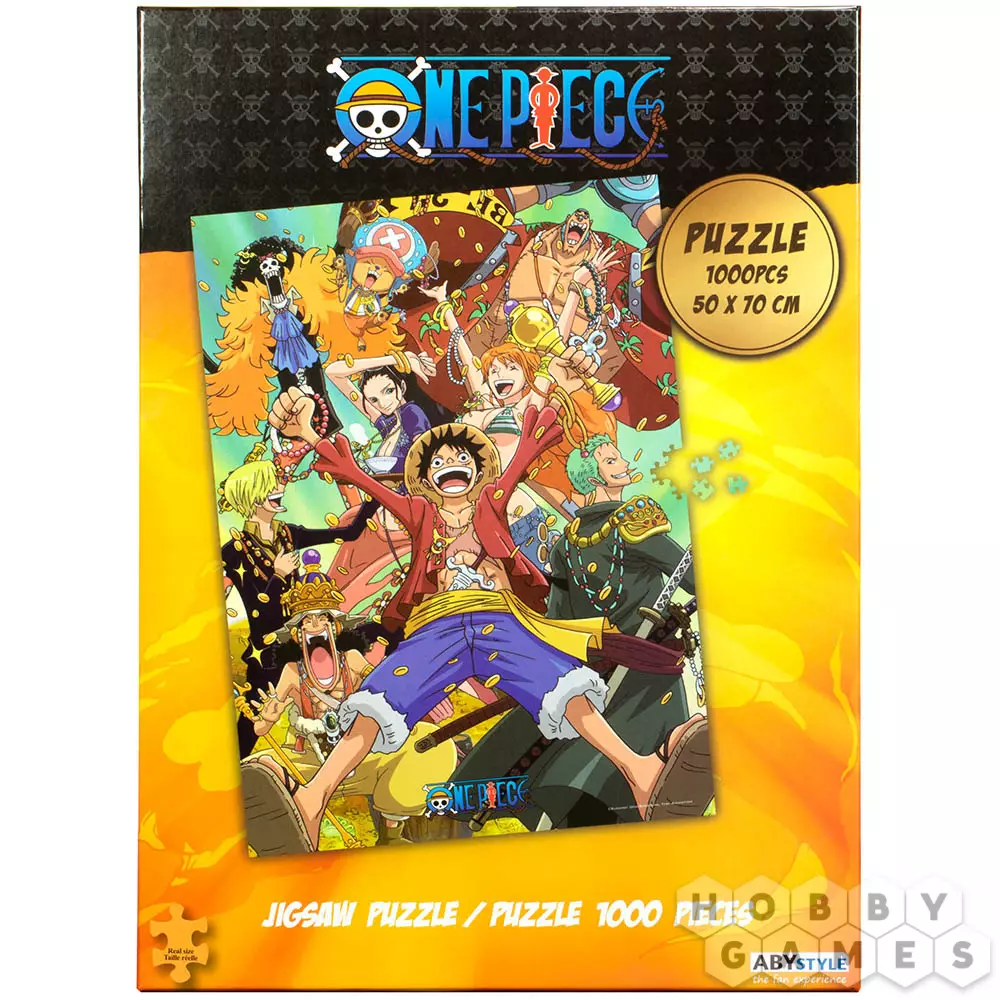 Это классический картонный пазл от компании ABYstyle, на котором изображена бесшабашная пиратская ватага из команды Соломенной Шляпы. Это главные герои классического аниме-телесериала One Piece, посвящённого поискам сокровищ бывшего пиратского корабля и приключениям мальчика Луффи.