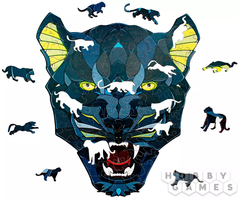 Собирая этот замечательный пазл, вы увидите, что каждый кусочек имеет свою форму, детали в виде маленьких пантерок. Процесс сборки настолько увлекательный, что вы не заметите, как пролетит время. Такой пазл будет интересен в любом возрасте.