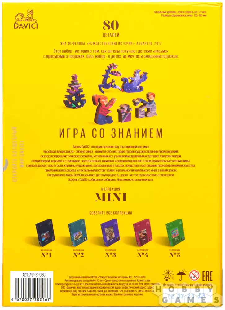 Добро пожаловать в удивительный мир художественных деревянных пазлов от компании DaVICI. Любовь к пазлам выходит на новый уровень и удовольствие от процесса может увлечь за собой даже тех, кого раньше не тянуло собирать пазлы. Чарующие формы деталей, прекрасные картины и натуральное дерево создают уникальные и неповторимые пазлы DaVICI. Каждый пазл полон загадок, отсылок и сюрпризов, которые будут открываться вам по мере сборки картины!